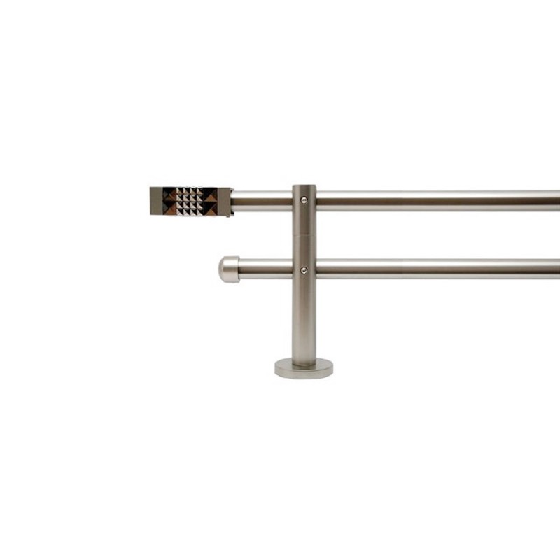 Cube – Set complet galerie metalica dubla, culoare Crom Mat, diametrul ambelor tevi 19mm, inele teflonate cu carlige pvc.