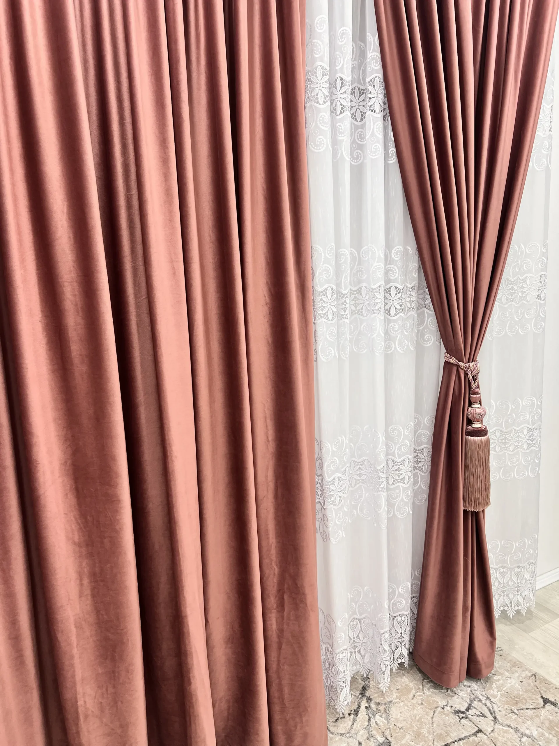 Draperiile de catifea cu textura fluida, placute la atingere, ce nu formeaza cute, opresc patrunderea luminii solare si au rol termic de a izola fata de temperaturile scazute din anotimpul rece cat si fata de canicula.