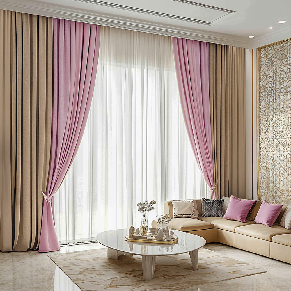 Draperiile de catifea cu textura fluida, placute la atingere, ce nu formeaza cutecu design modern in doua culori, opresc patrunderea luminii solare si au rol termic de a izola fata de temperaturile scazute din anotimpul rece cat si fata de canicula.