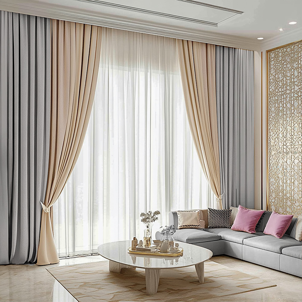 Draperiile de catifea cu textura fluida, placute la atingere, ce nu formeaza cutecu design modern in doua culori, opresc patrunderea luminii solare si au rol termic de a izola fata de temperaturile scazute din anotimpul rece cat si fata de canicula.