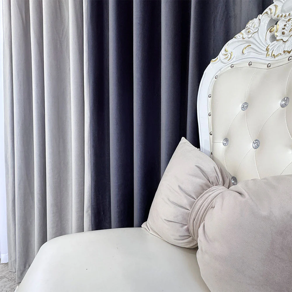 Draperiile de catifea cu textura fluida, placute la atingere, ce nu formeaza cutecu design modern in doua culori, opresc patrunderea luminii solare si au rol termic de a izola fata de temperaturile scazute din anotimpul rece cat si fata de canicula.