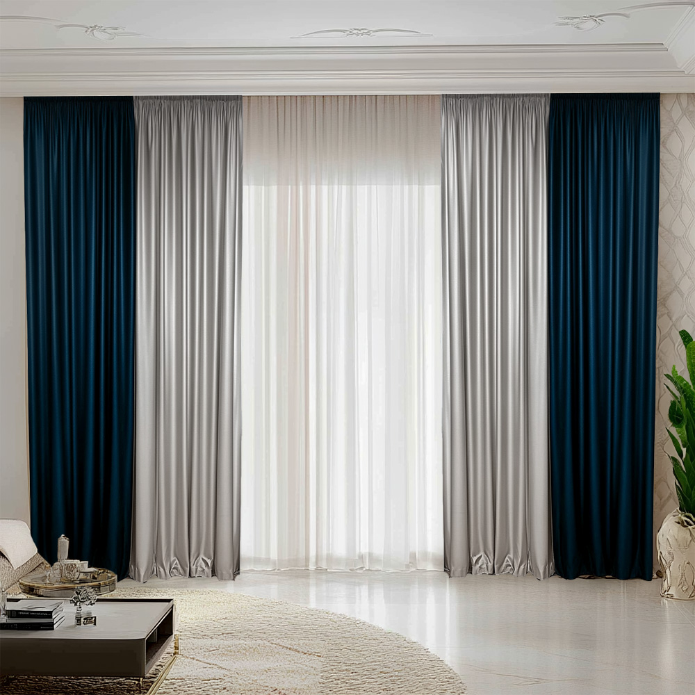 Draperiile de catifea cu textura fluida, placute la atingere, ce nu formeaza cutecu design modern in doua culori, opresc patrunderea luminii solare si au rol termic de a izola fata de temperaturile scazute din anotimpul rece cat si fata de canicula.