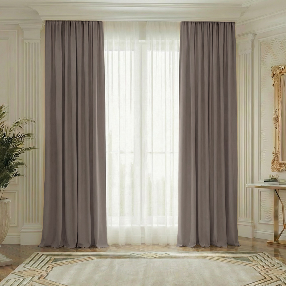Draperiile Draperiile Stofa Shine din material Poliester Blackout cu textura groasa, opresc patrunderea luminii solare si au rol termic de a izola fata de temperaturile scazute din anotimpul rece cat si fata de canicula, sunt concepute cu manopera cu pliuri duble de tip randunica inclusa in pret pentru un efect organizat si elegant.