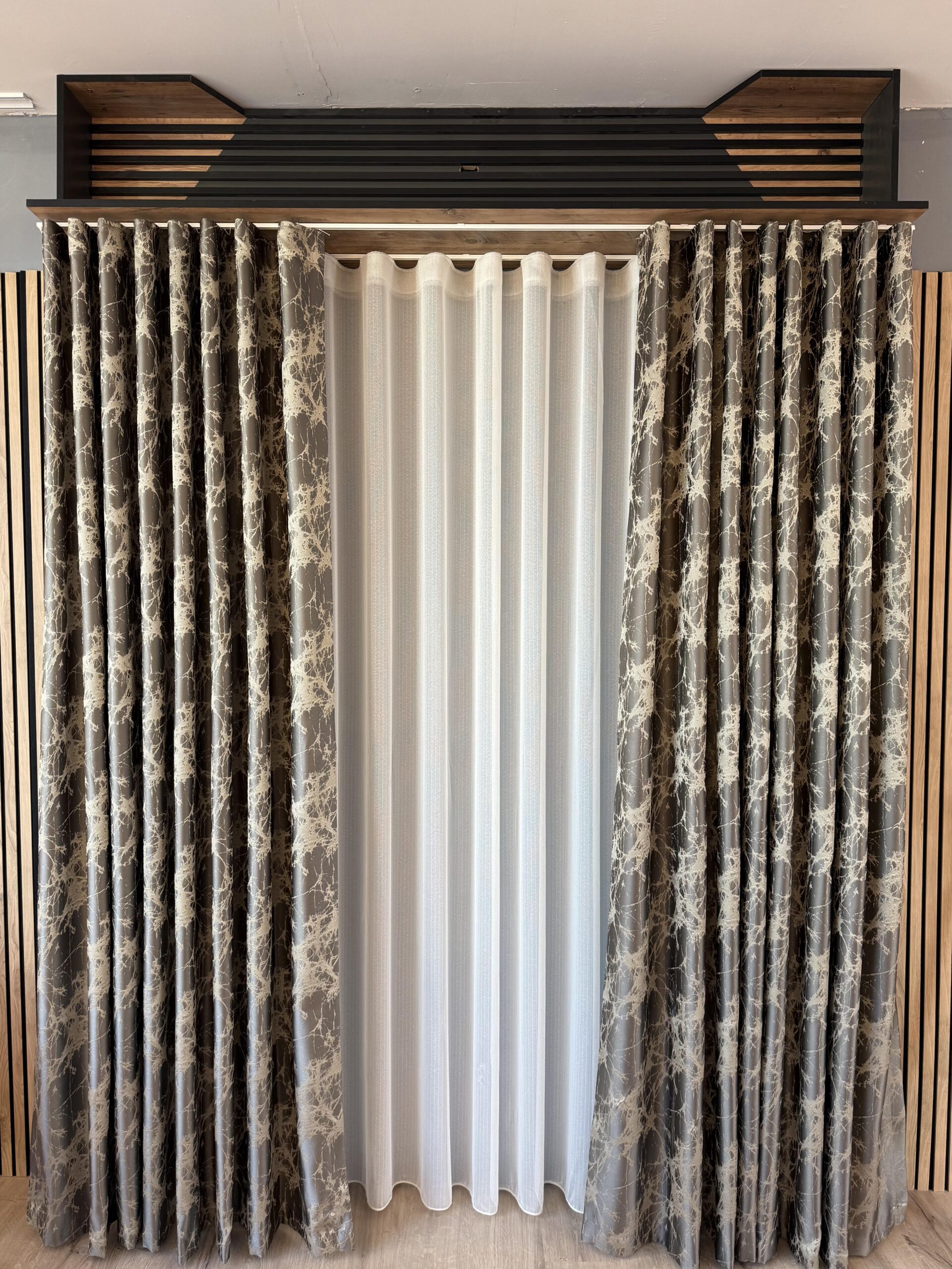 Draperie Elegantă Gri Antracit cu Imprimeu Oglindă Spartă