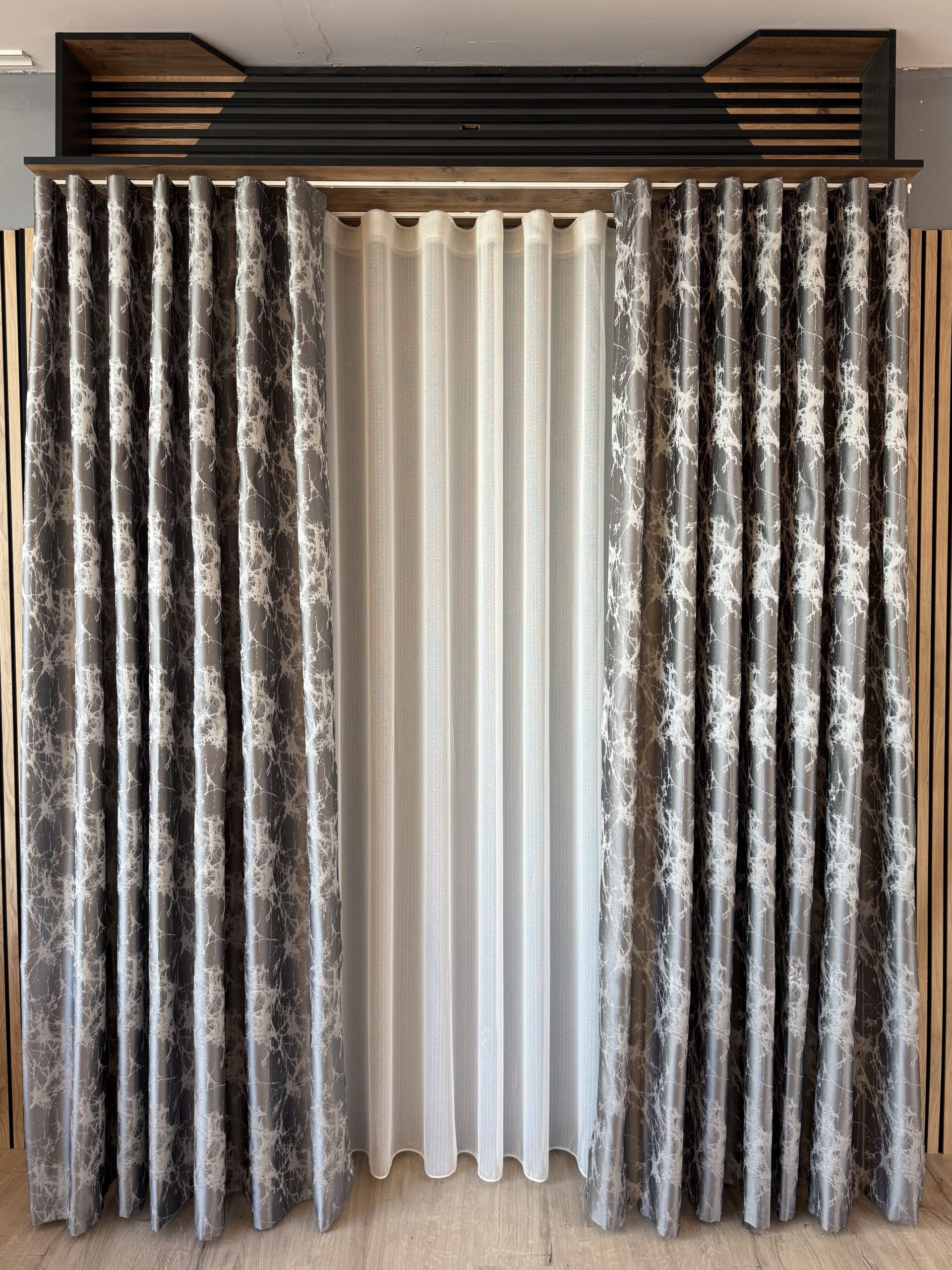 Draperie Elegantă Gri Deschis cu Imprimeu Oglindă Spartă