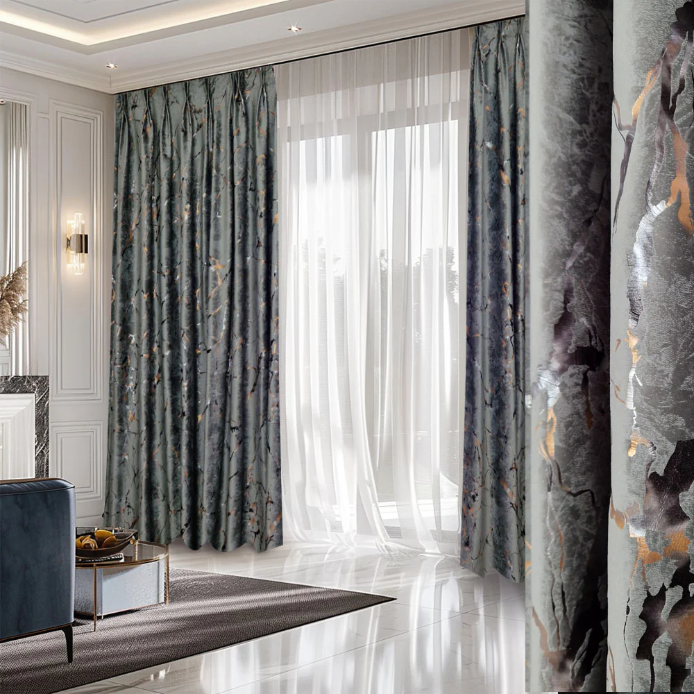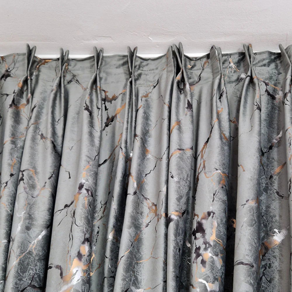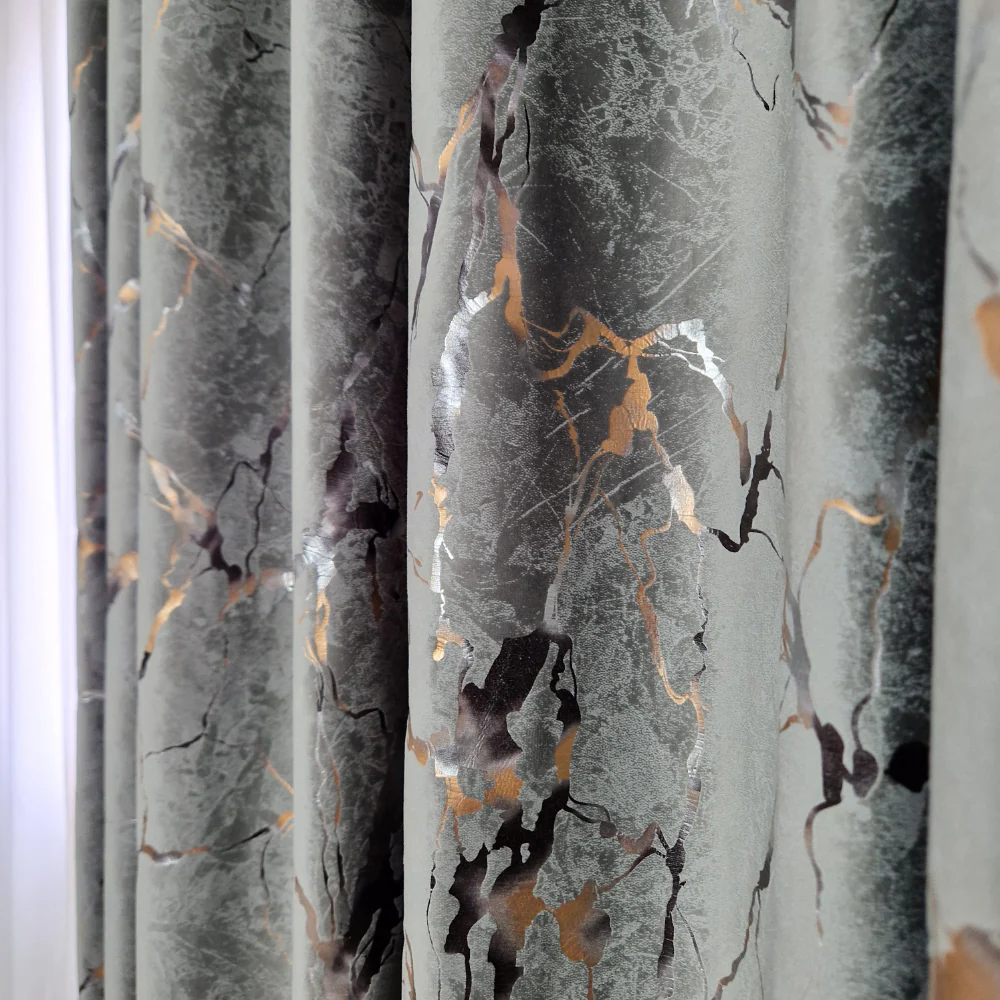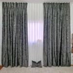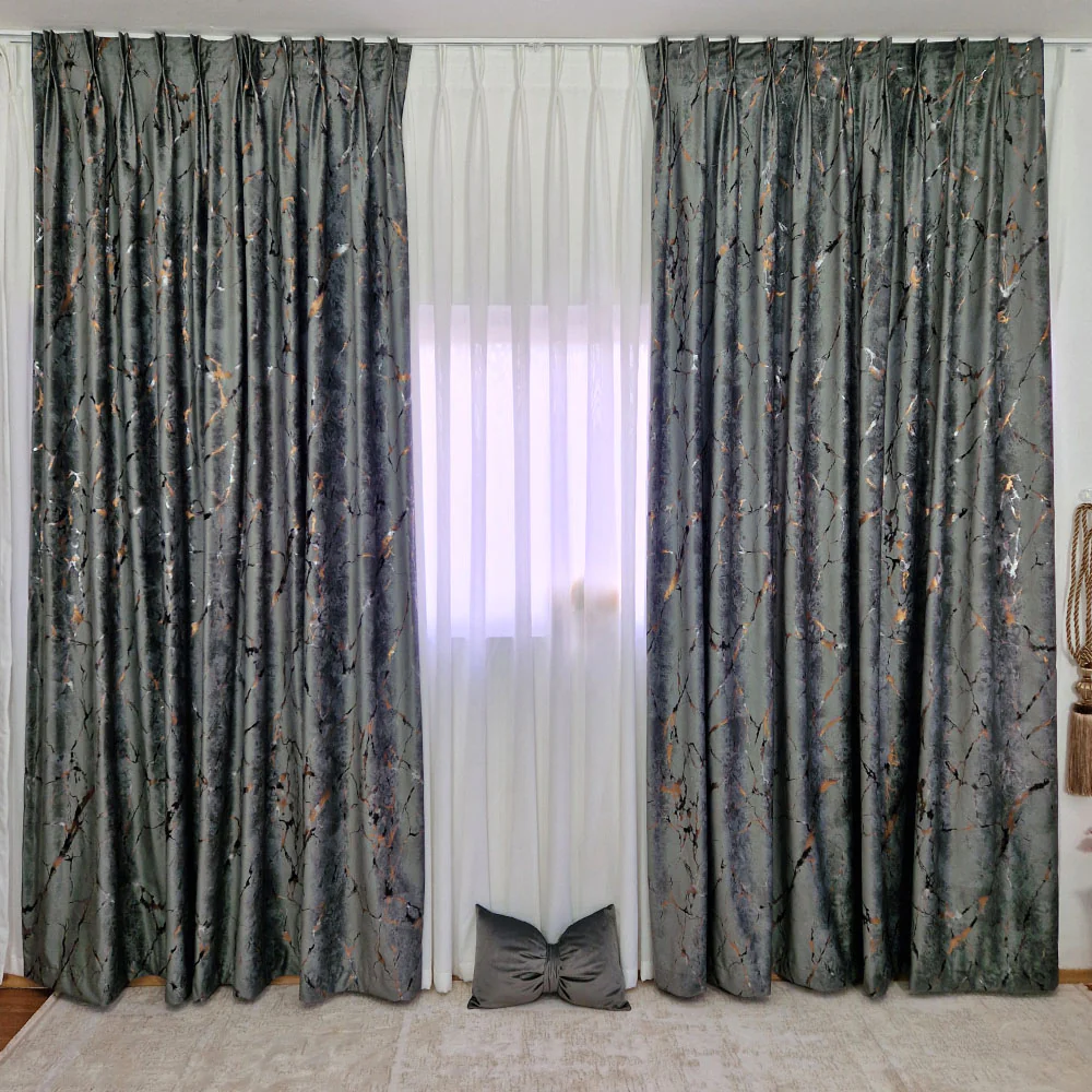 Draperiile de catifea cu insertii metalice, textura fluida, gata cusuta cu rejansa de 10 cm, placute la atingere, ce nu formeaza cute, opresc patrunderea luminii solare si au rol termic de a izola fata de temperaturile scazute din anotimpul rece cat si fata de canicula.