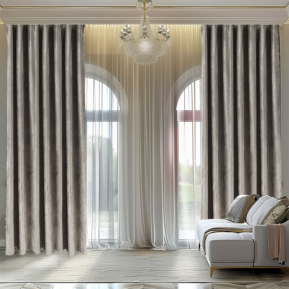 Draperiile de catifea cu textura fluida, placute la atingere, ce nu formeaza cute, opresc patrunderea luminii solare si au rol termic de a izola fata de temperaturile scazute din anotimpul rece cat si fata de canicula.