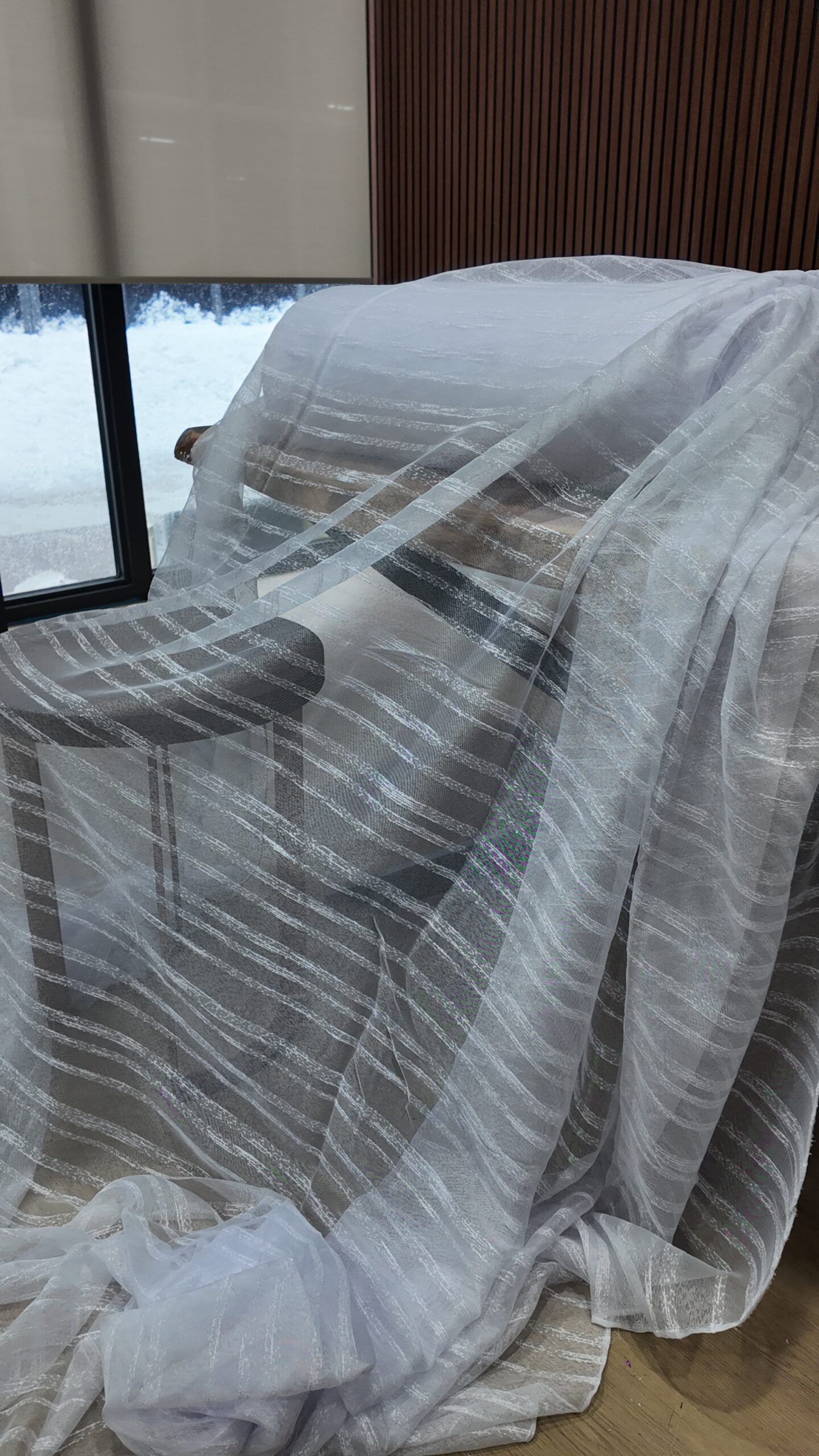 Tesatura de tip plasa permite luminii naturale sa intre in interior, pentru un efect stralucitor si incantator. Perdeaua va da senzatia unei incaperi mai inalte, daca se opteaza oentru o lungime pana la nivelul podelei.