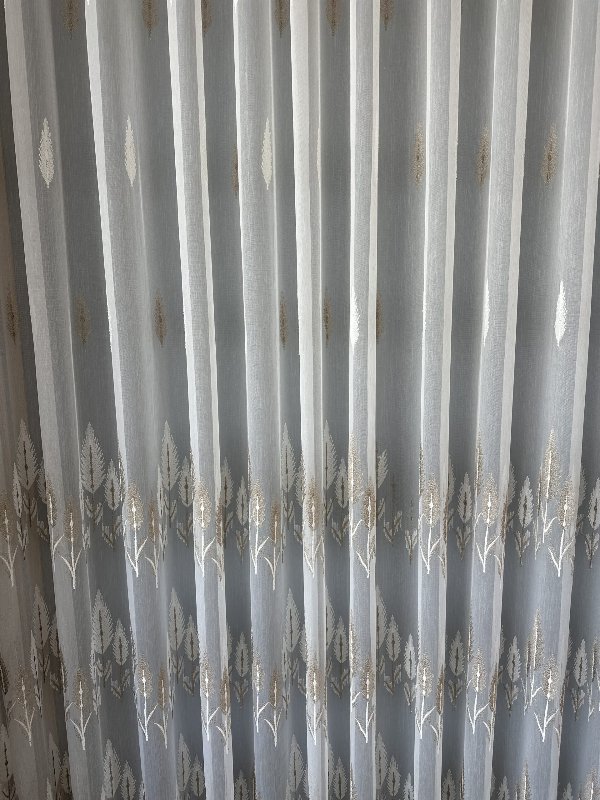 Perdea Bambus Brodat Model Copac Crem cu Maro 25PR194