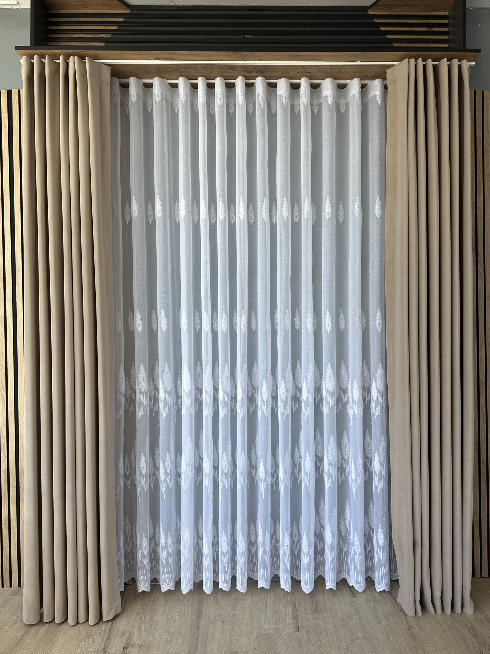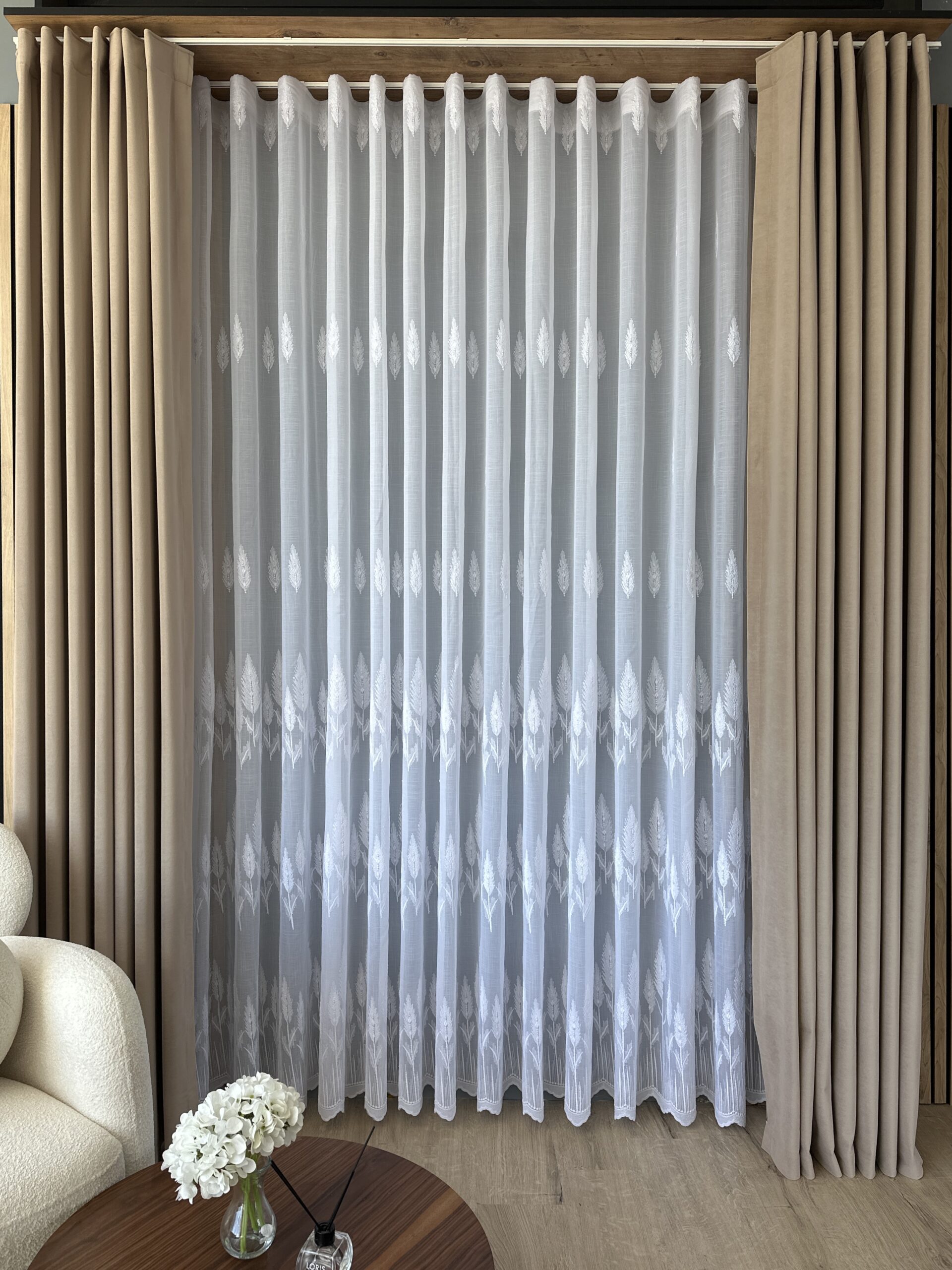 Perdea Brodat Model Copac – Alb 25PR194 L5m/H2.60m cu Rejansa Wave