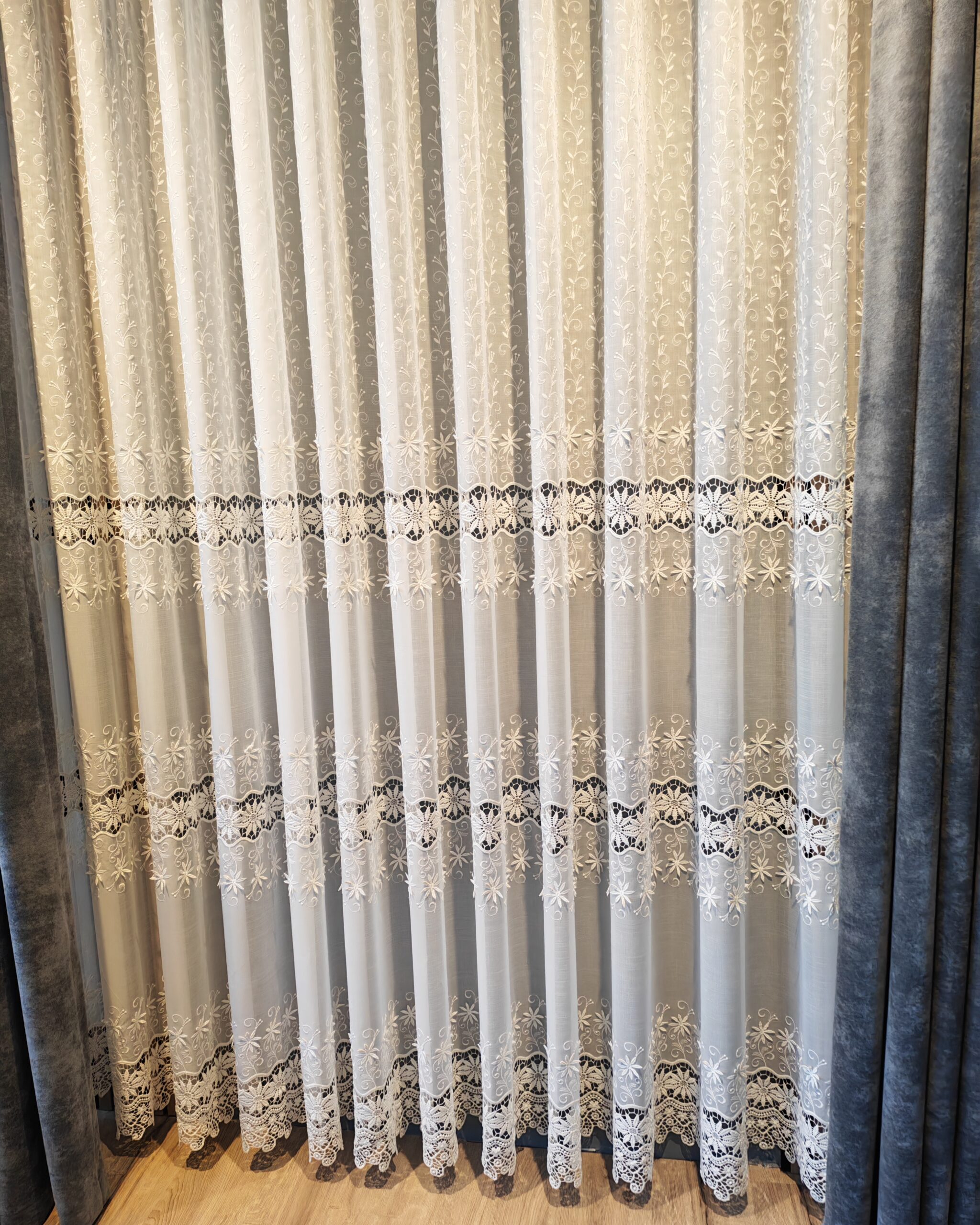 Tesatura de tip plasa permite luminii naturale sa intre in interior, pentru un efect stralucitor si incantator. Perdeaua va da senzatia unei incaperi mai inalte, daca se opteaza oentru o lungime pana la nivelul podelei.