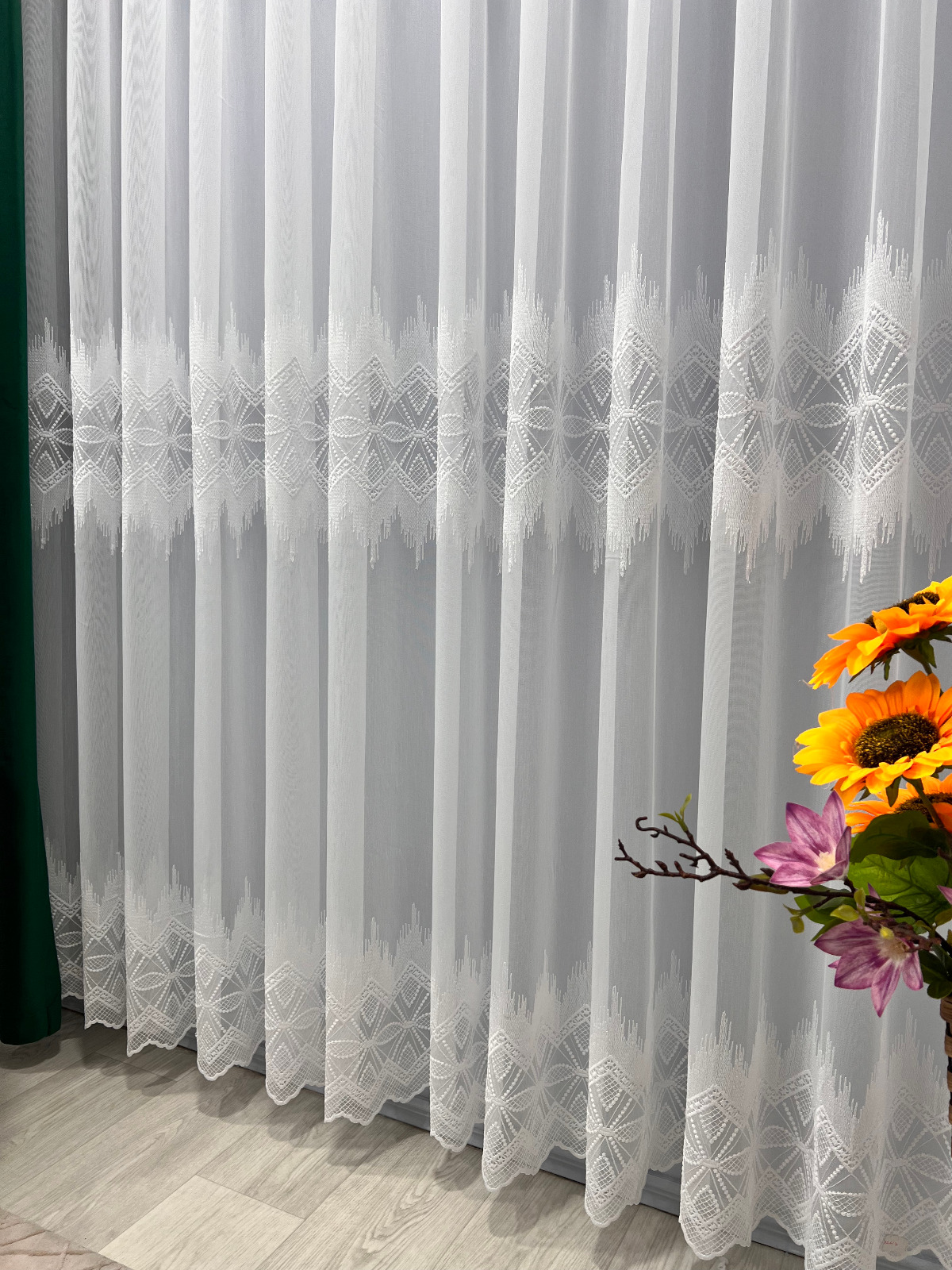 Tesatura de tip voal permite luminii naturale sa intre in interior, pentru un efect stralucitor si incantator. Perdeaua va da senzatia unei incaperi mai inalte, daca se opteaza pentru o lungime pana la nivelul podelei.