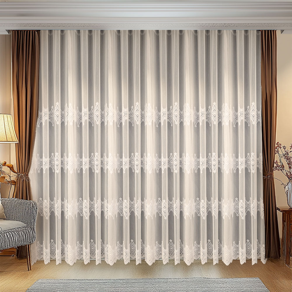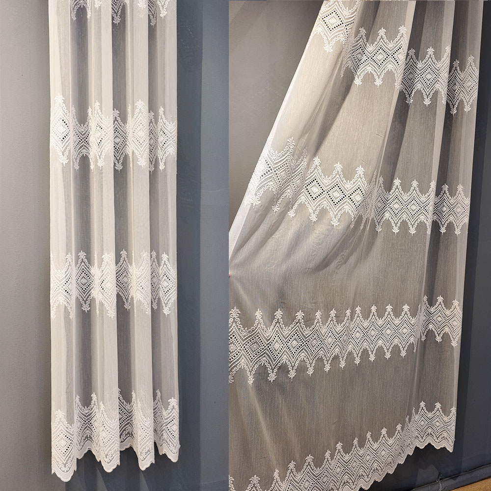 Material de Perdea Carina cu Broderie Eleganta Crem/Maro.