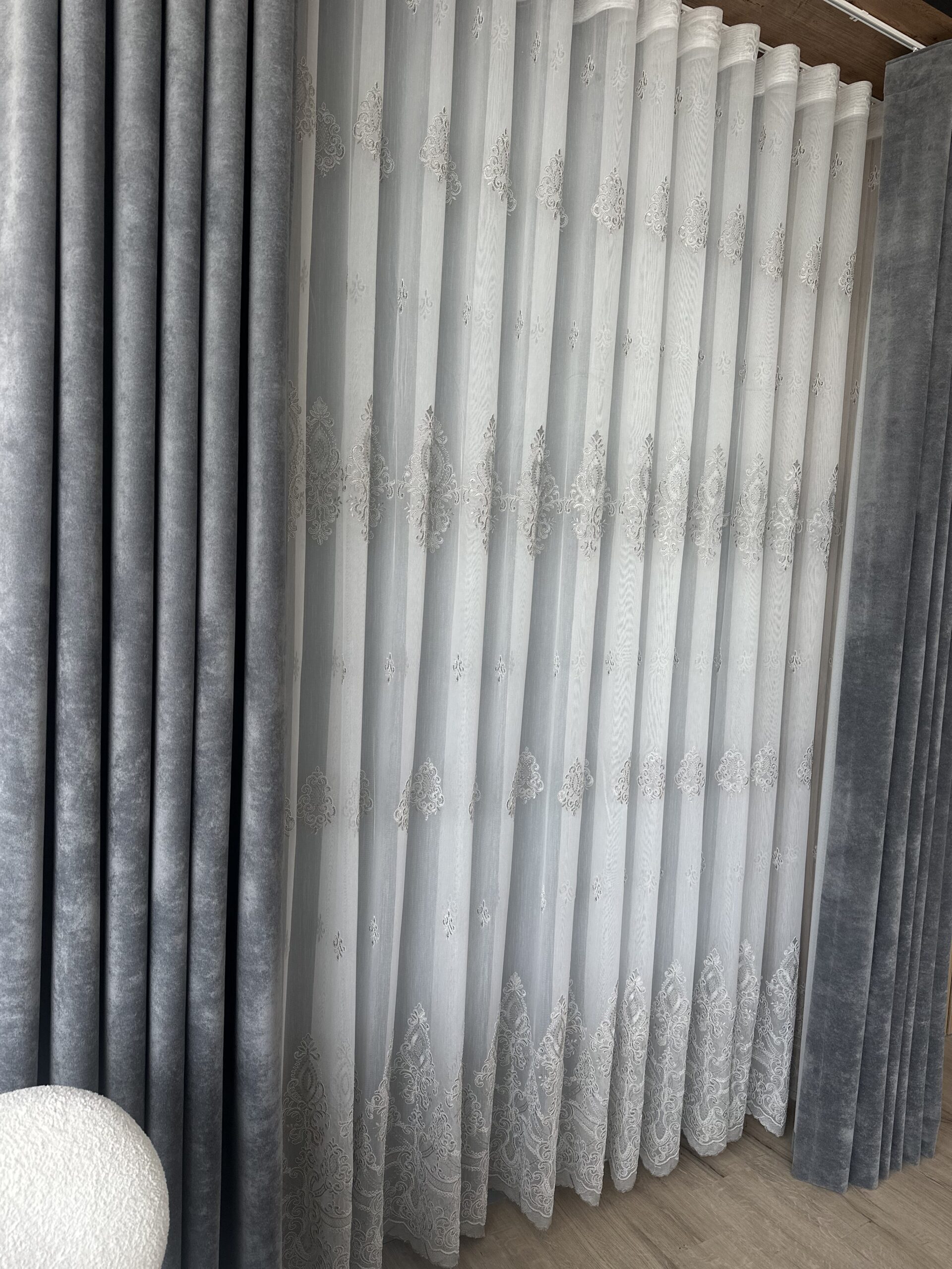 Perdea Daiana din Bambus cu Broderie Eleganta Gri 25PR083