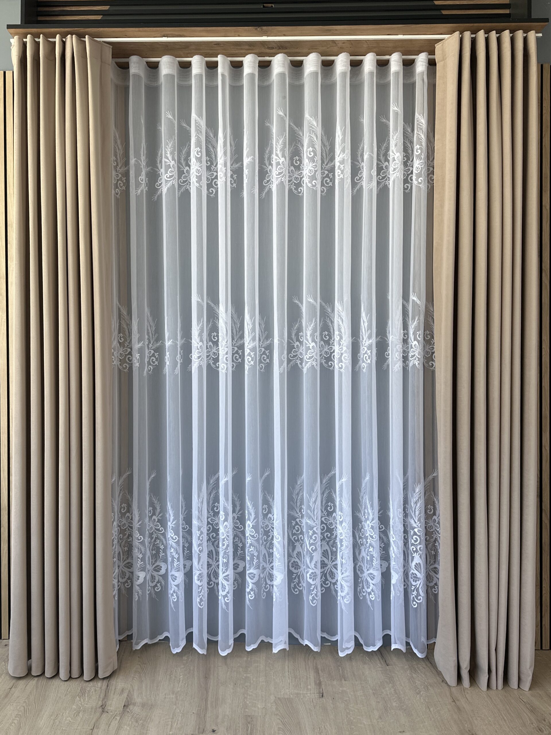 Perdea din Bambus Albă cu Broderie Luxury Butterfly 24784
