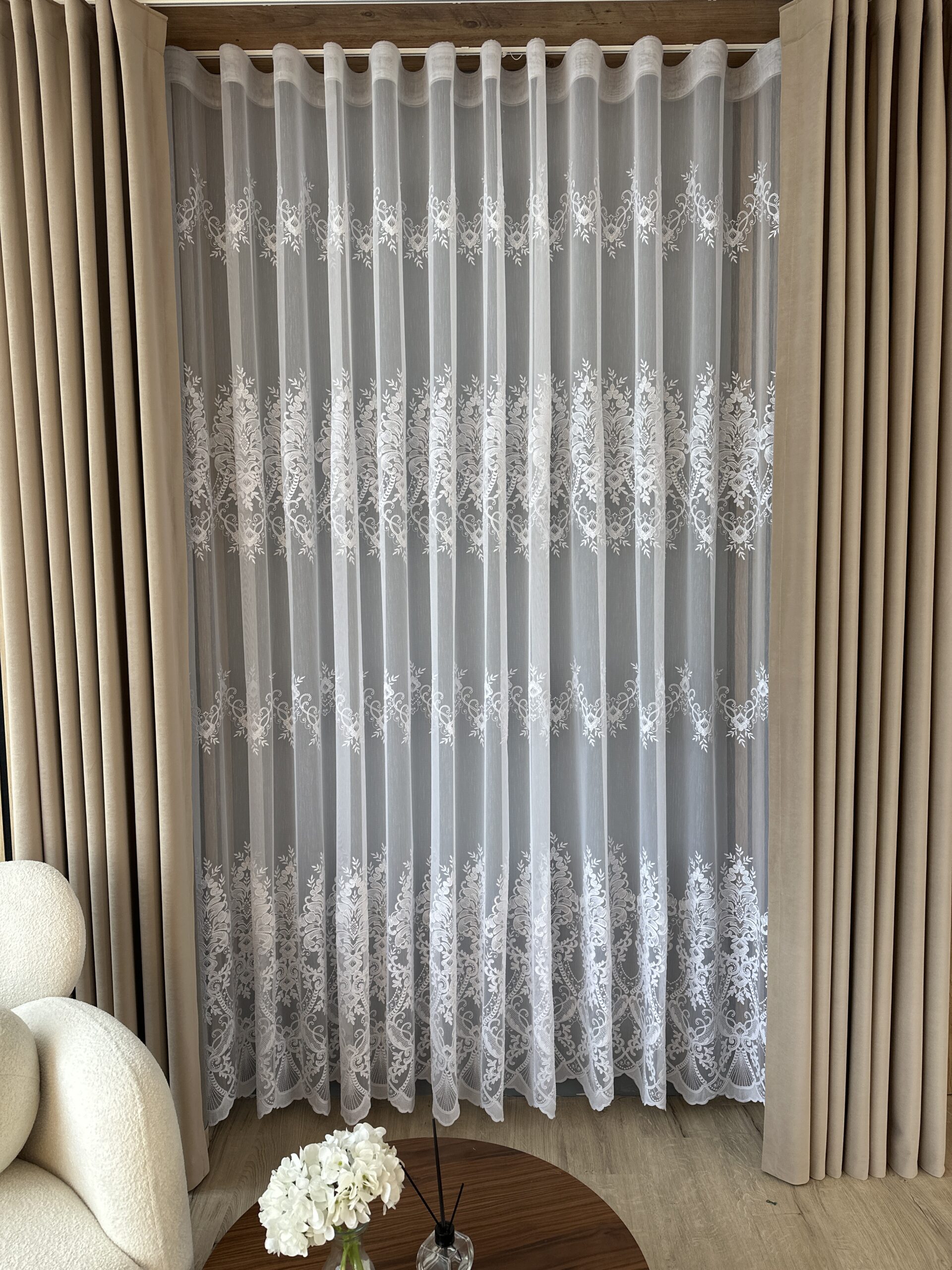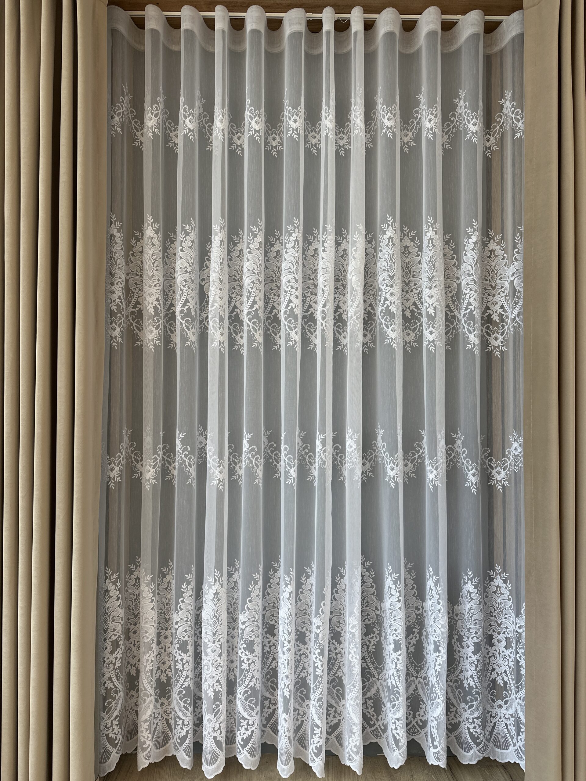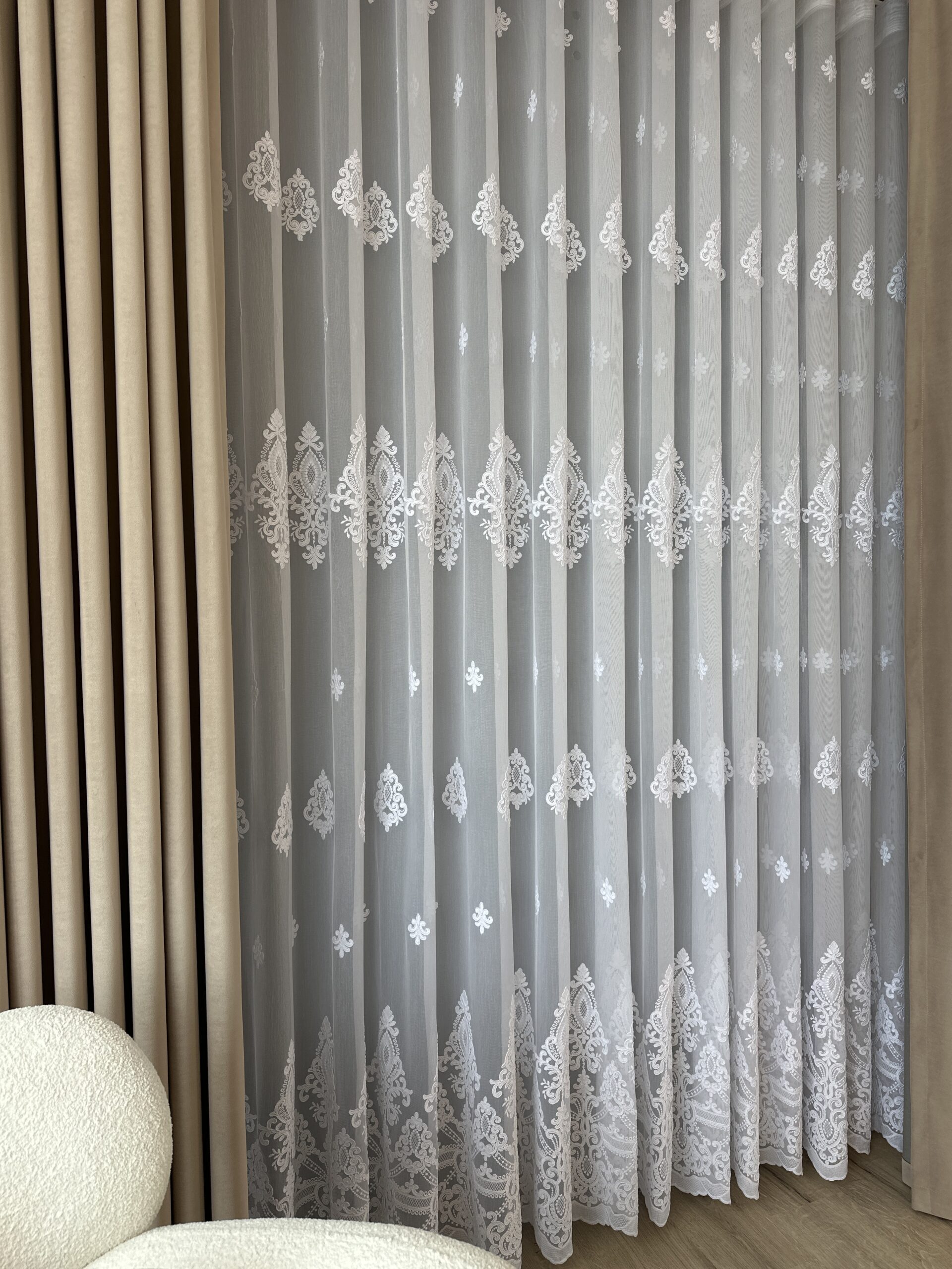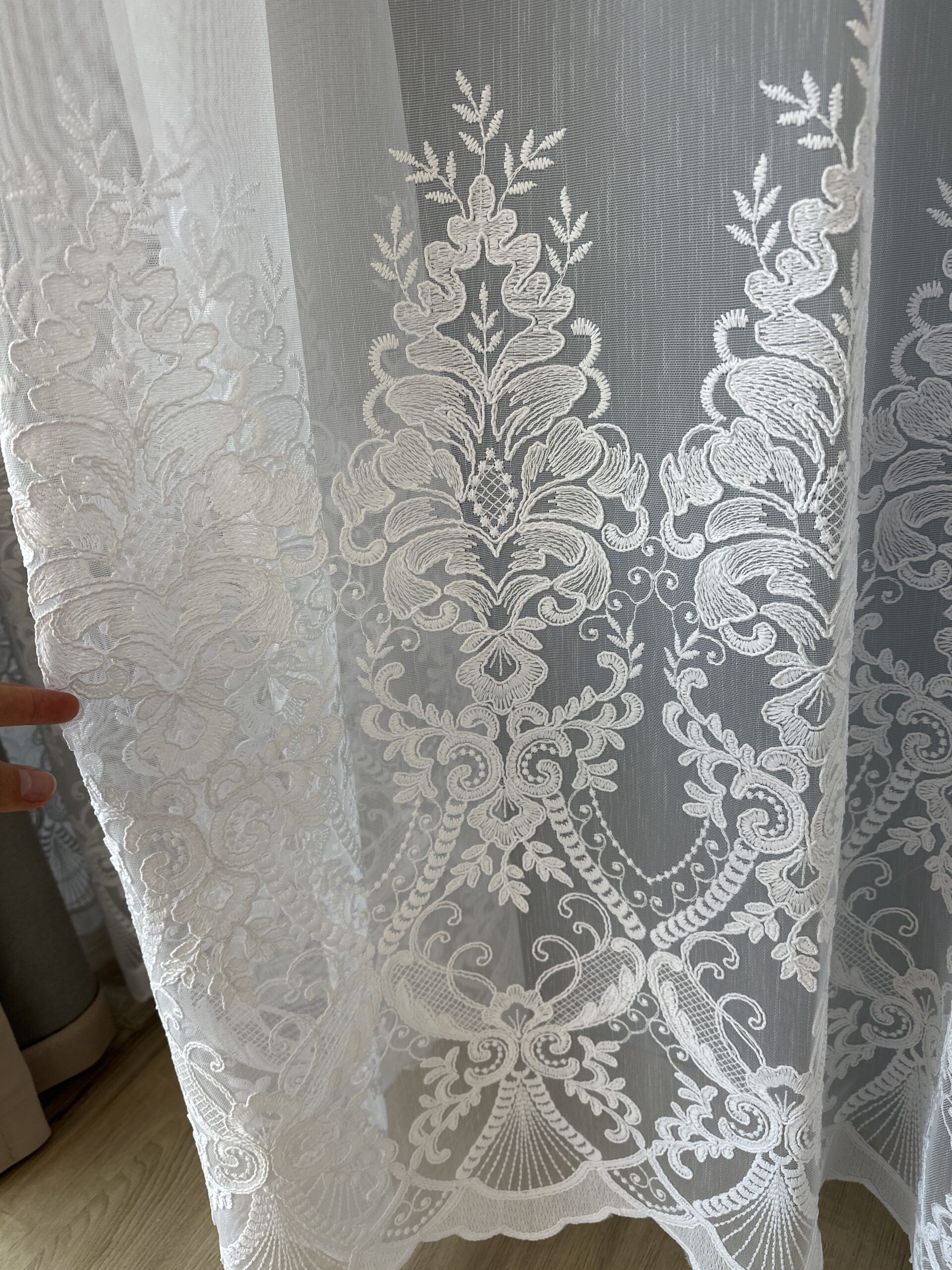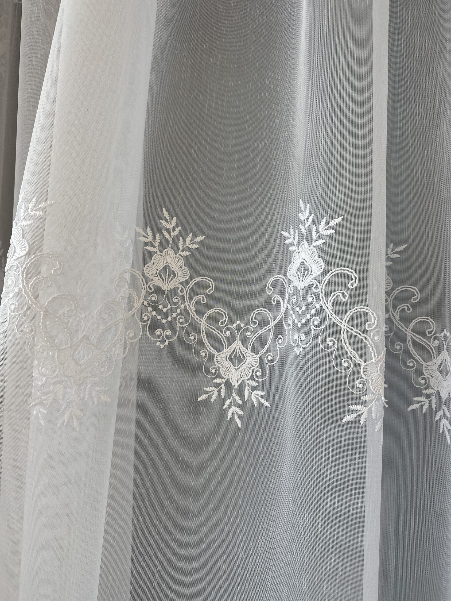 Material de Perdea Evelina cu Broderie Tesuta Alb.