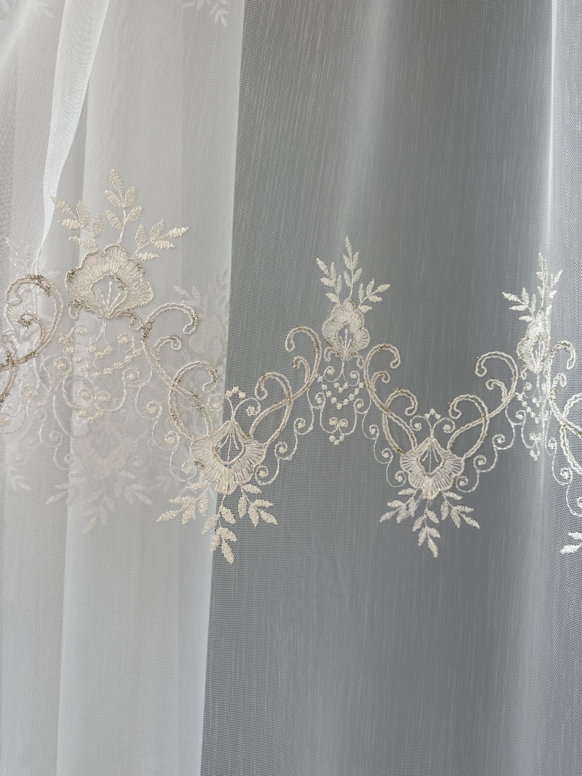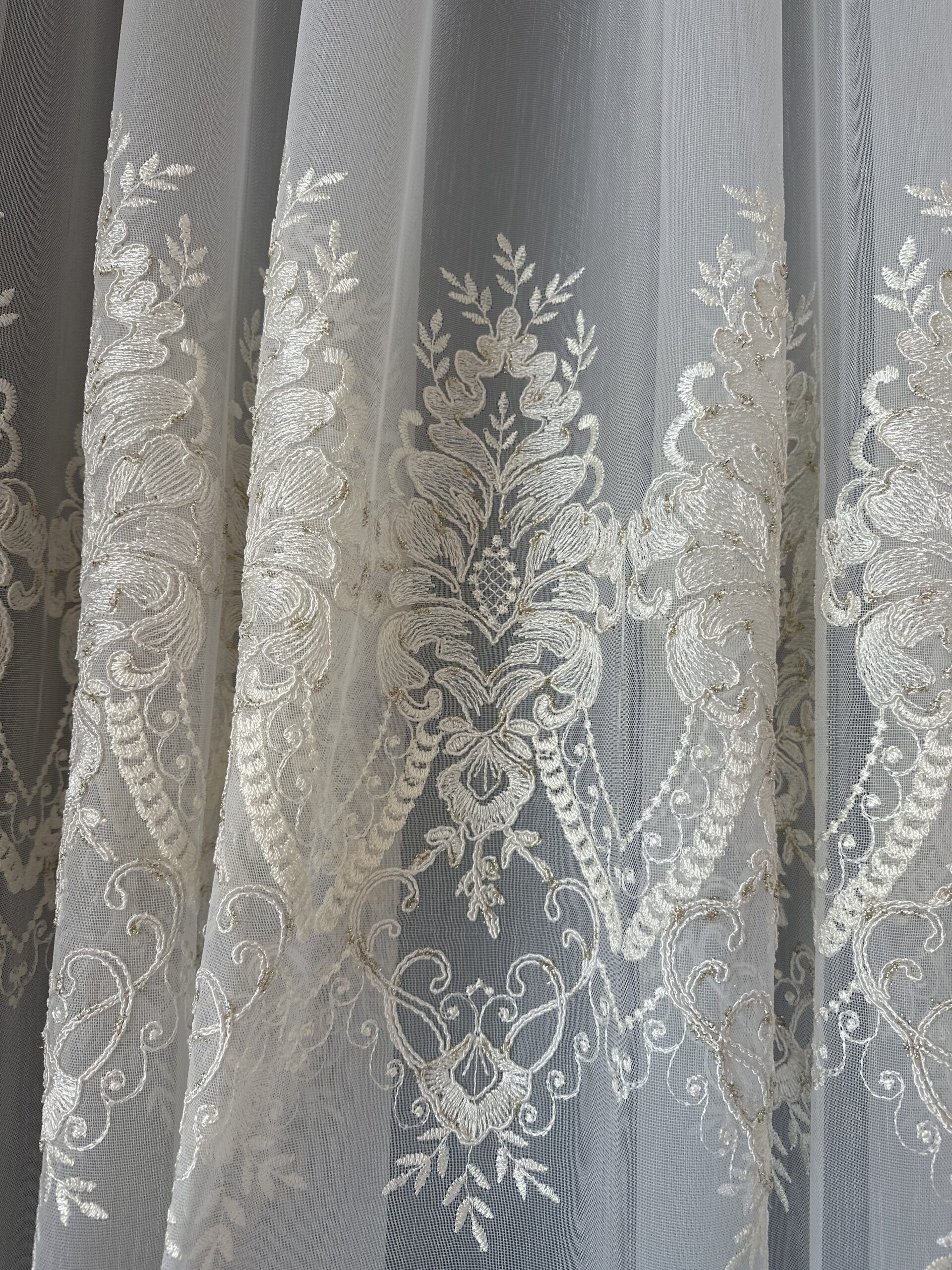 Material de Perdea Evelina cu Broderie Tesuta Crem/Auriu.