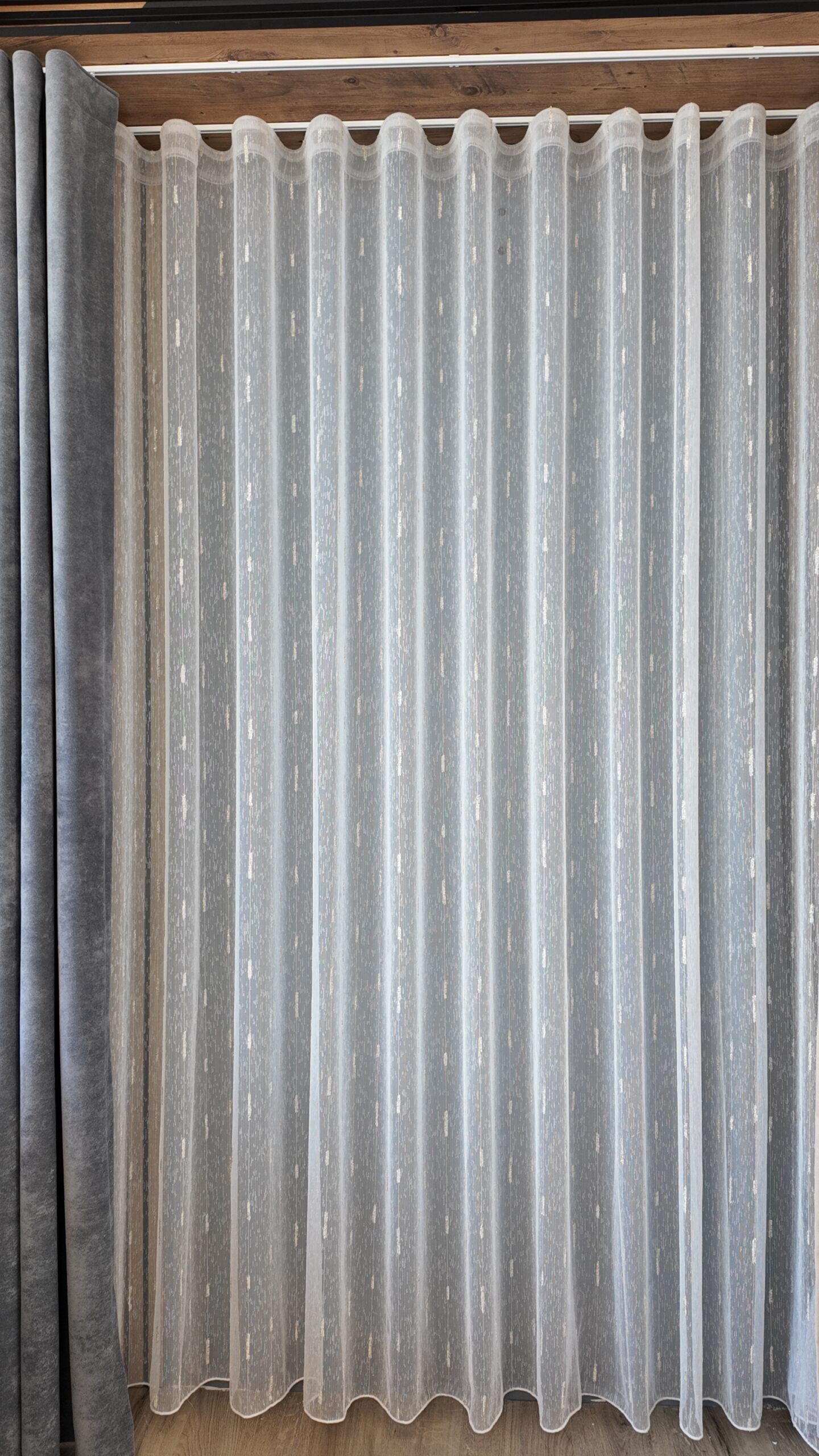 Tesatura de tip voal cu textura de in permite luminii naturale sa intre in interior, pentru un efect stralucitor si incantator. Perdeaua va da senzatia unei incaperi mai inalte, daca se opteaza pentru o lungime pana la nivelul podelei.