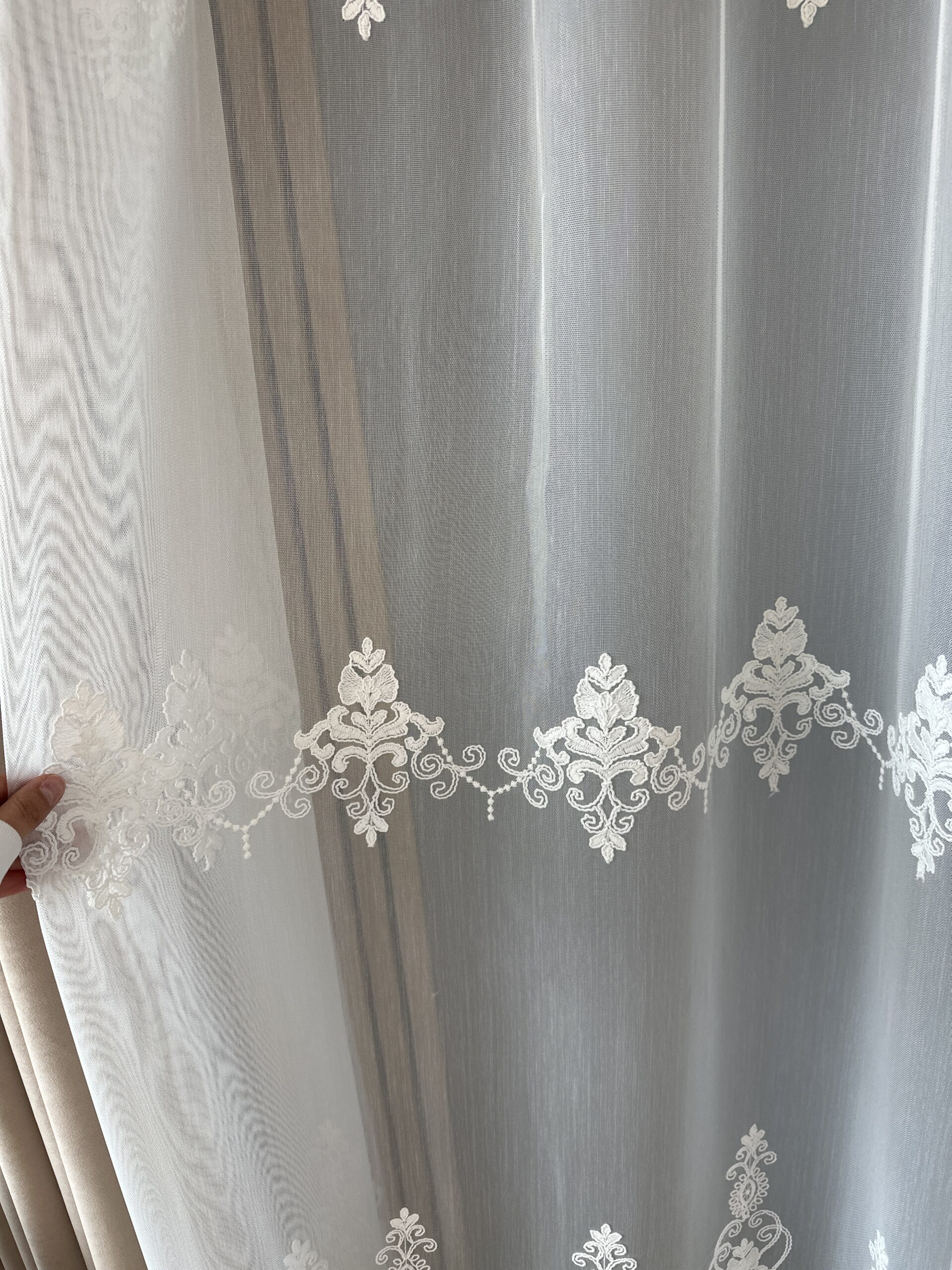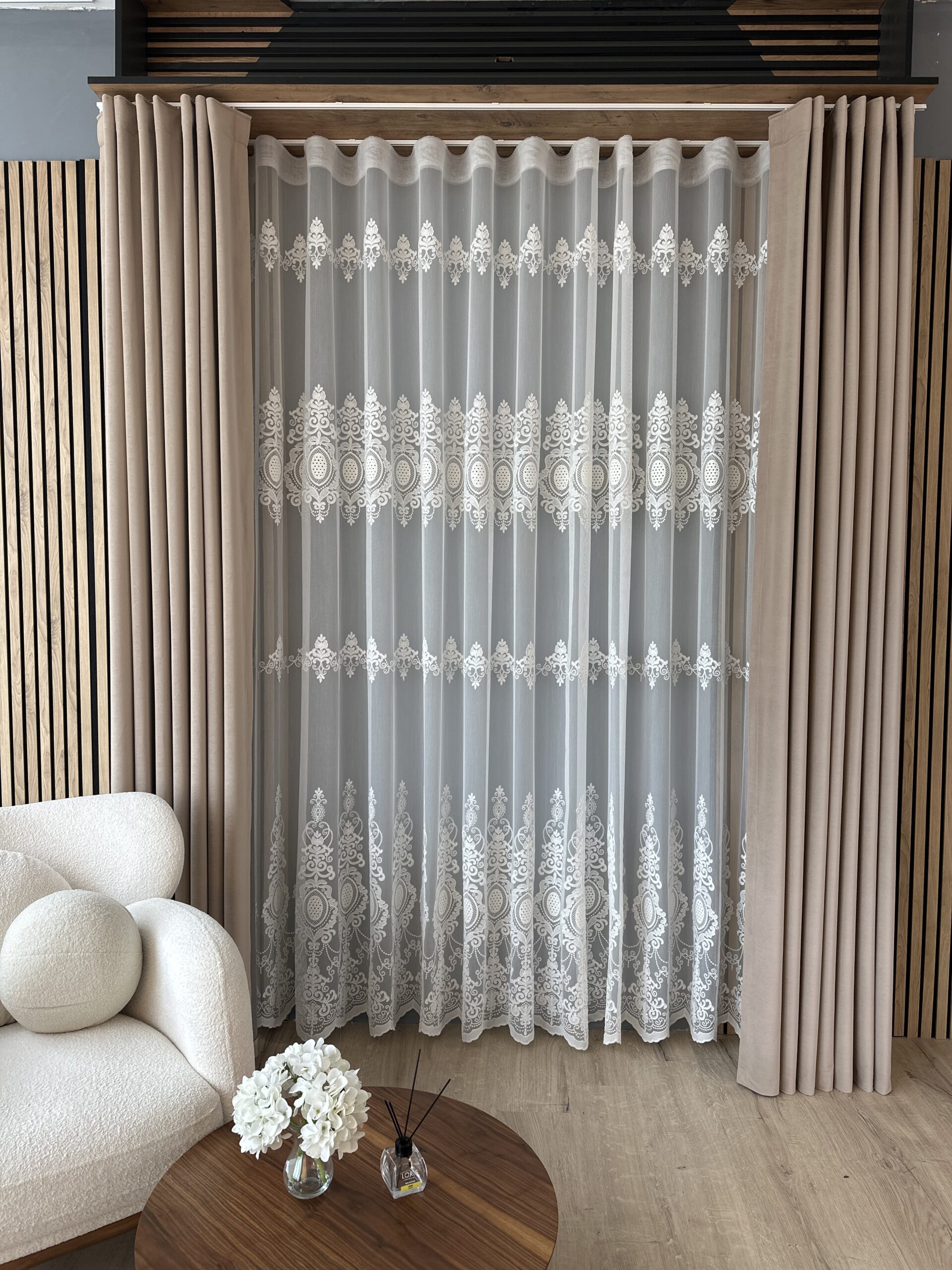 Material de Perdea Reina cu Broderie Imperiala Crem.