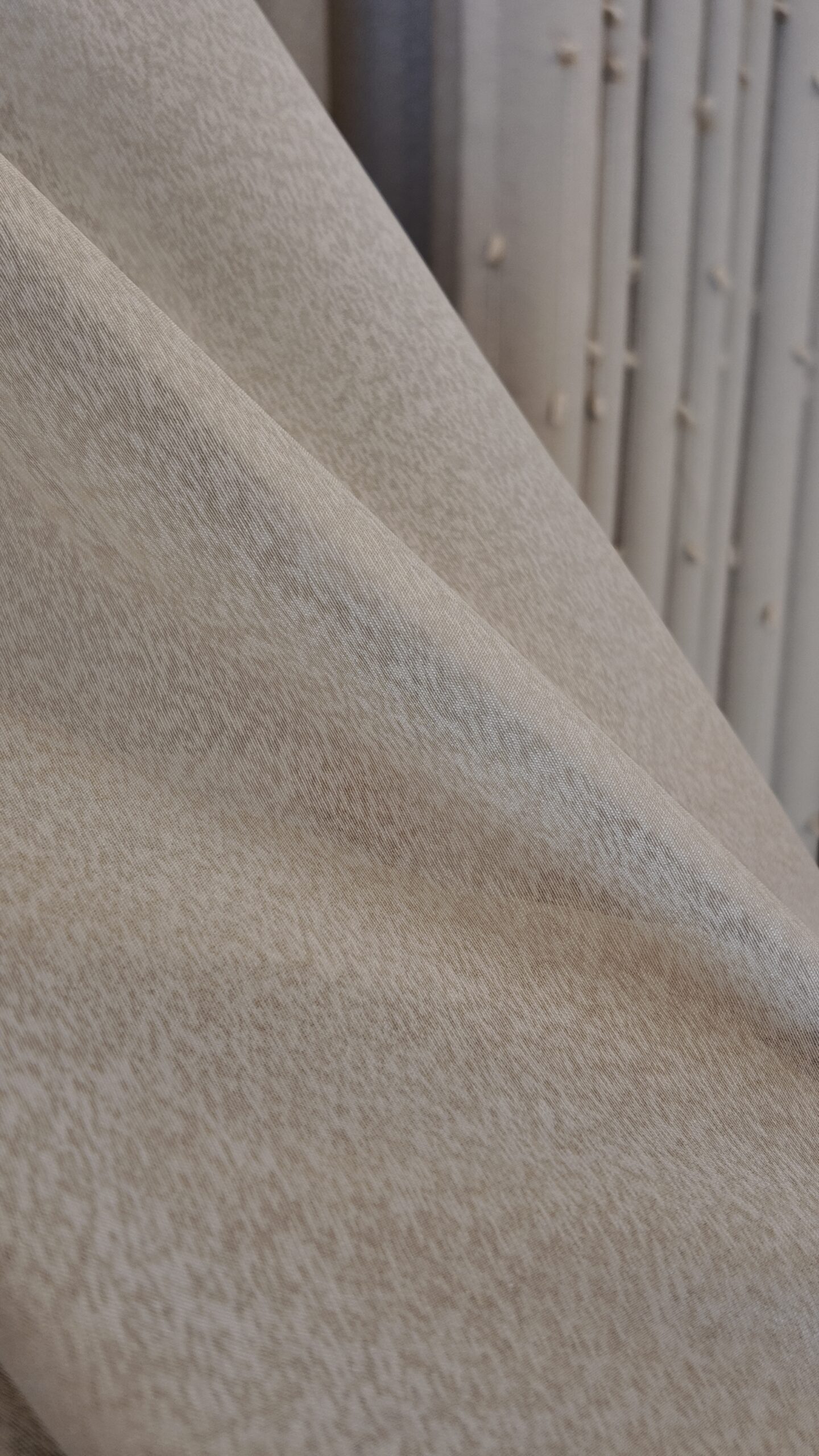 Tesatura de tip voal cu textura de in permite luminii naturale sa intre in interior, pentru un efect stralucitor si incantator. Perdeaua va da senzatia unei incaperi mai inalte, daca se opteaza pentru o lungime pana la nivelul podelei.