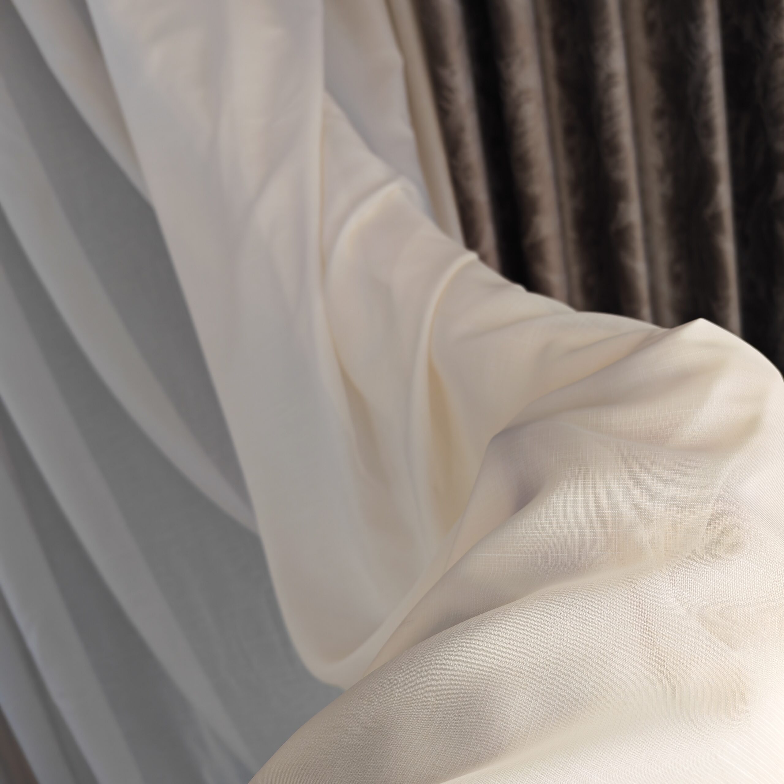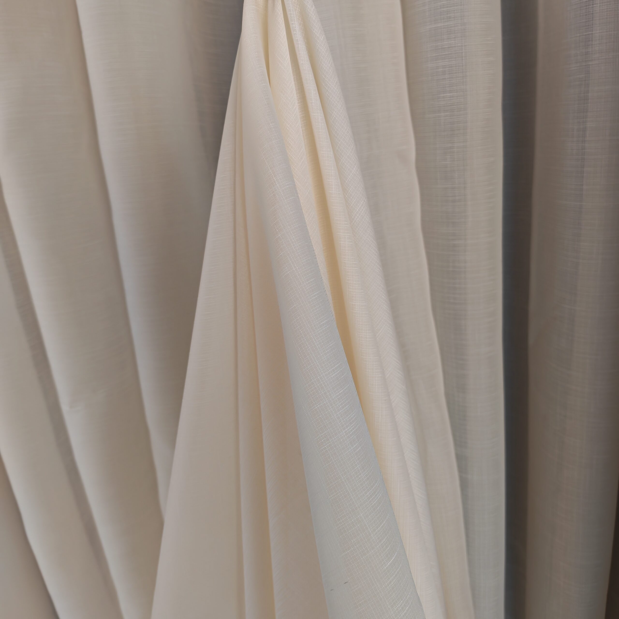 Tesatura de tip voal cu textura de in permite luminii naturale sa intre in interior, pentru un efect stralucitor si incantator. Perdeaua va da senzatia unei incaperi mai inalte, daca se opteaza pentru o lungime pana la nivelul podelei.