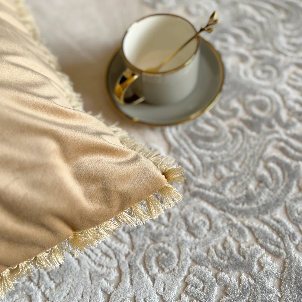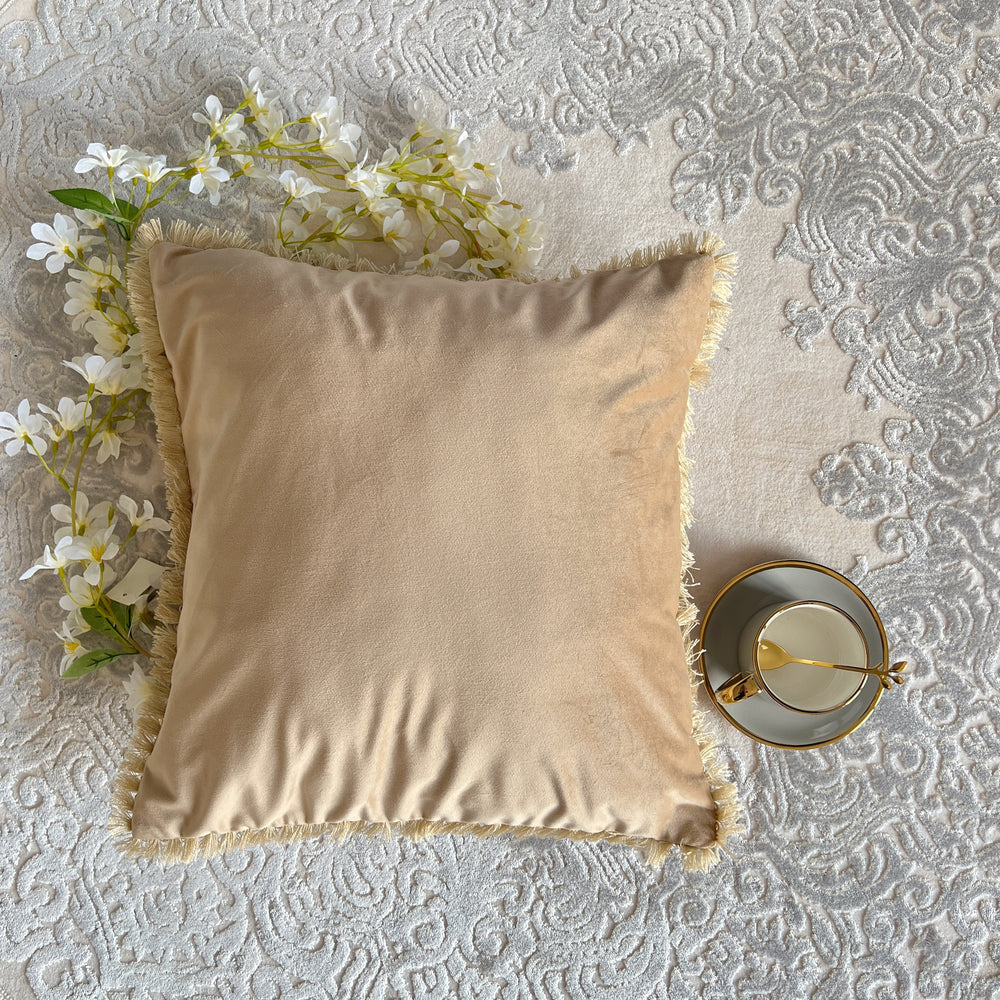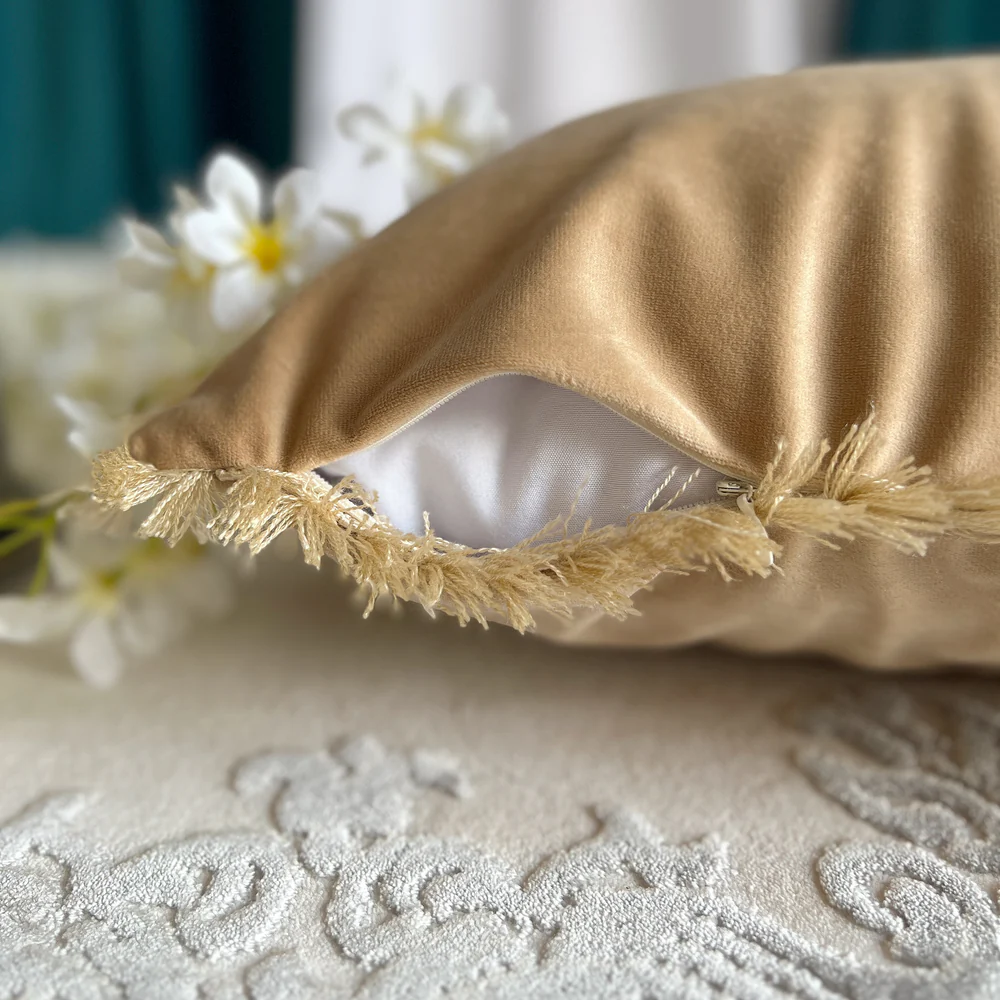 Perna Decorativa cu Ciucuri din Catifea cu Umplutura Siliconica Crem